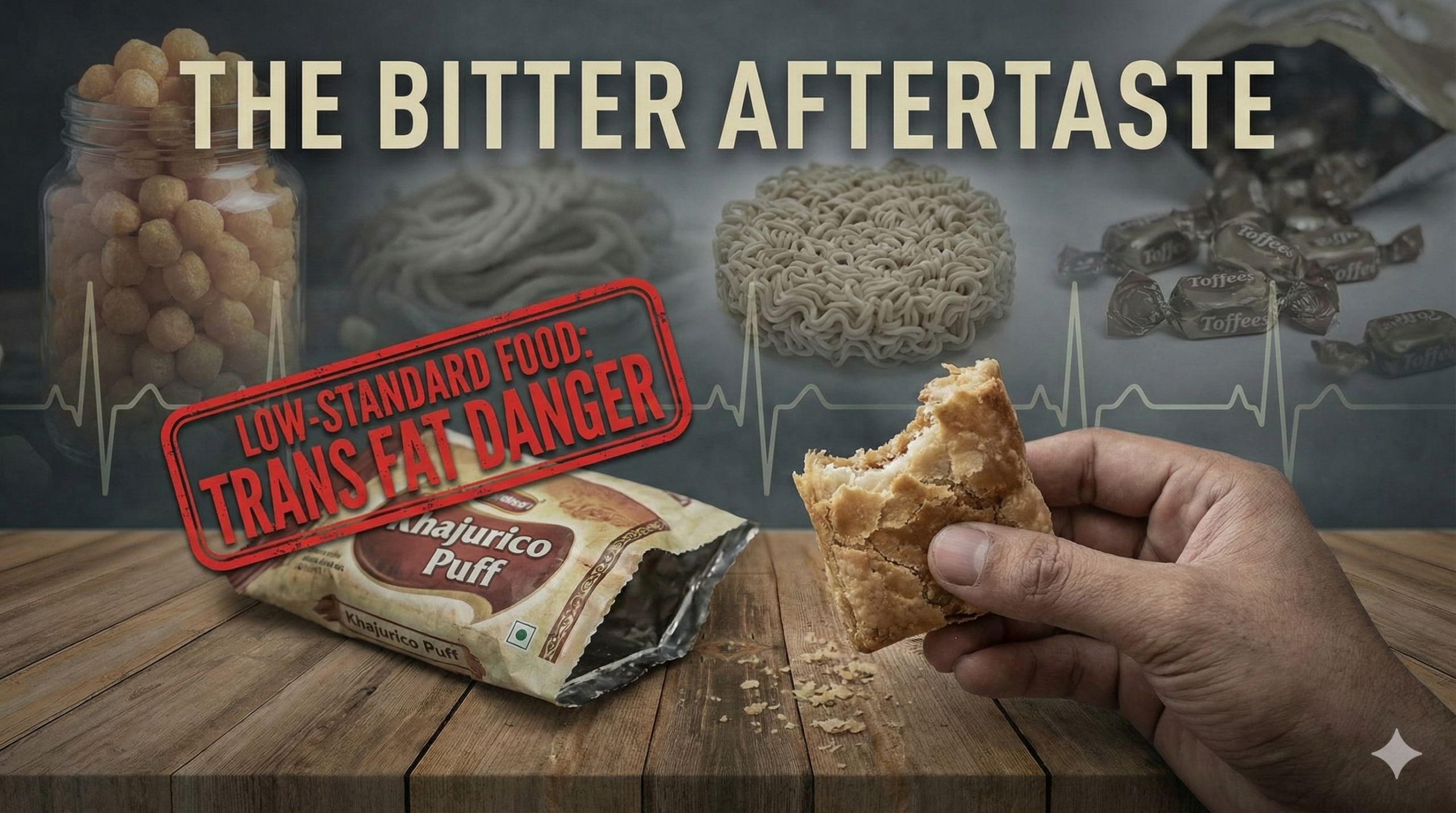 A recent example is the case of Khajurico Puff. This is a snack almost everyone in the city knows. When authorities tested it, they found that the amount of industrial trans fat, one of the worst things you can put in your body was above the legal limit. The trans fat content was found to be over 2%, so the product was officially labelled “low-standard food” and asked the manufacturer to withdraw the product from the market.